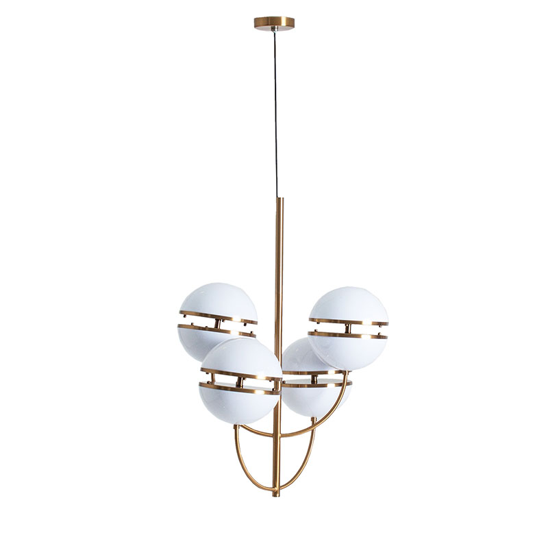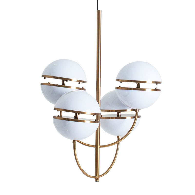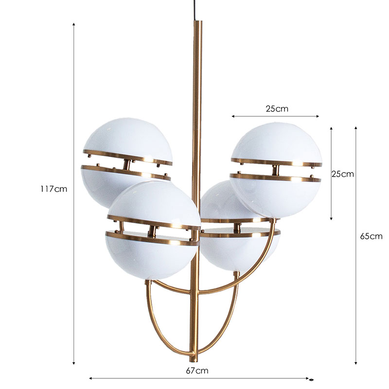 Lámpara de colgar, de estilo art deco. Fabricado en hierro, en color blanco, combinado con cristal, en color oro. Producto desmontable.