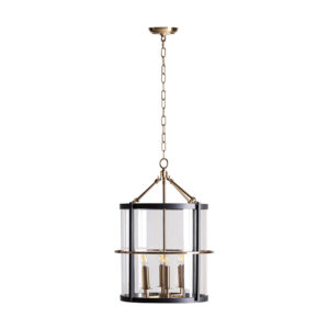 Lámpara de colgar de estilo art deco fabricado en hierro en color negro combinado con metacrilato en color oro. Producto desmontable.