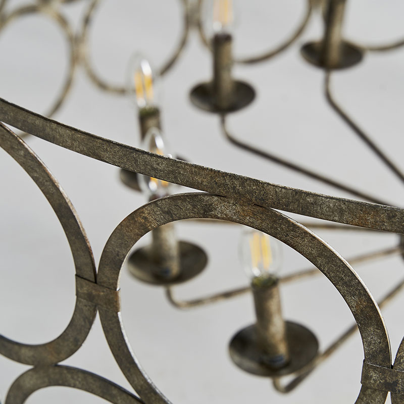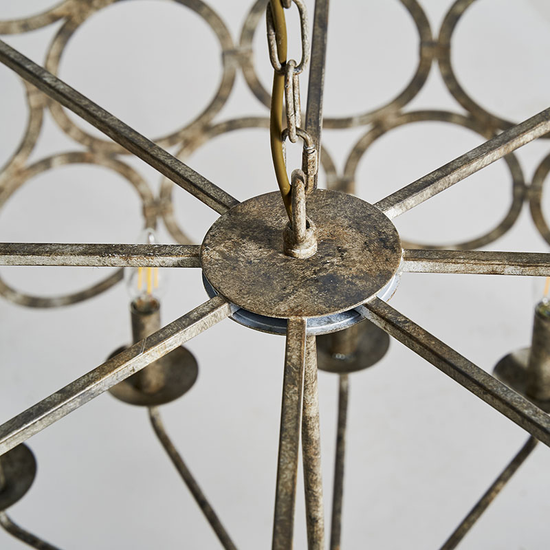 Lámpara de colgar de estilo provenzal fabricado en hierro en color plata con acabado envejecido.