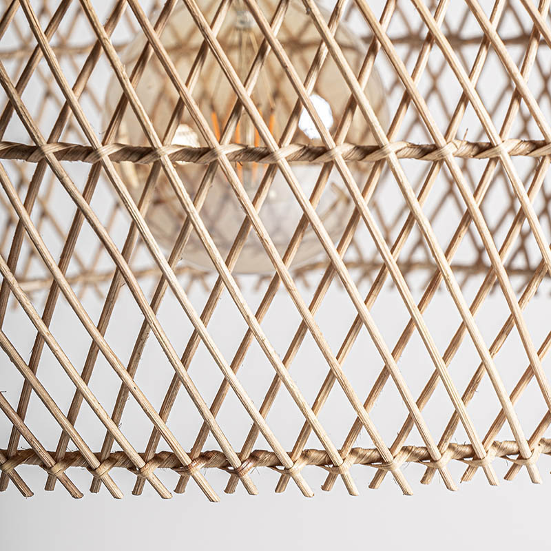 Lámpara de colgar de estilo boho fabricado en ratán en color marrón.