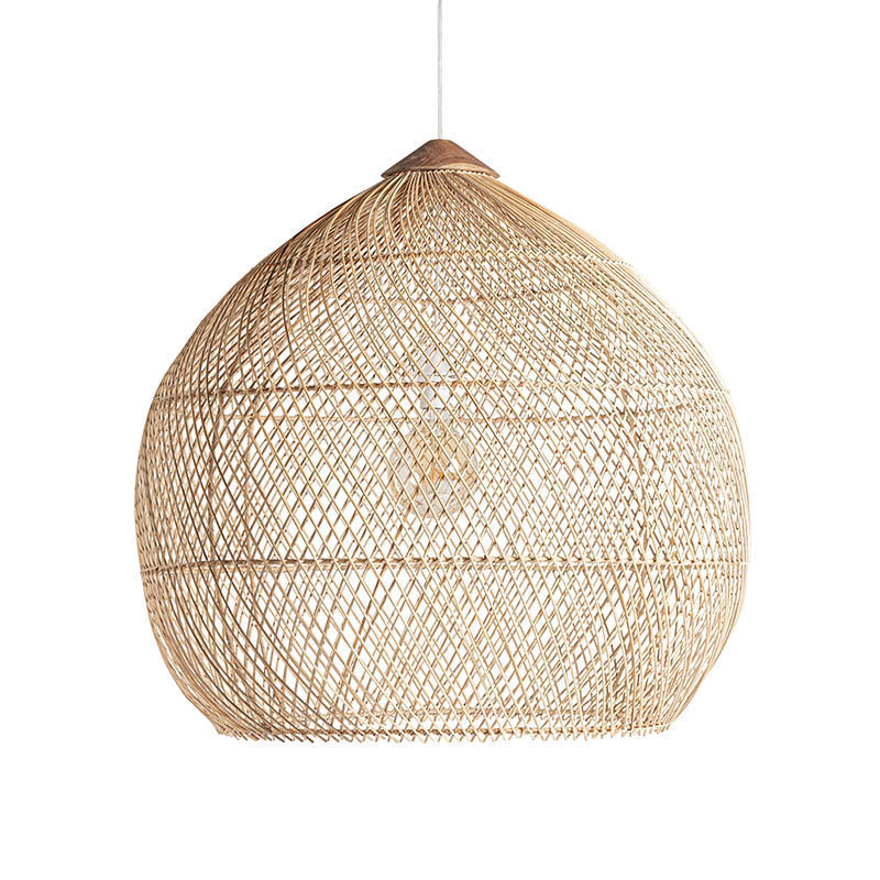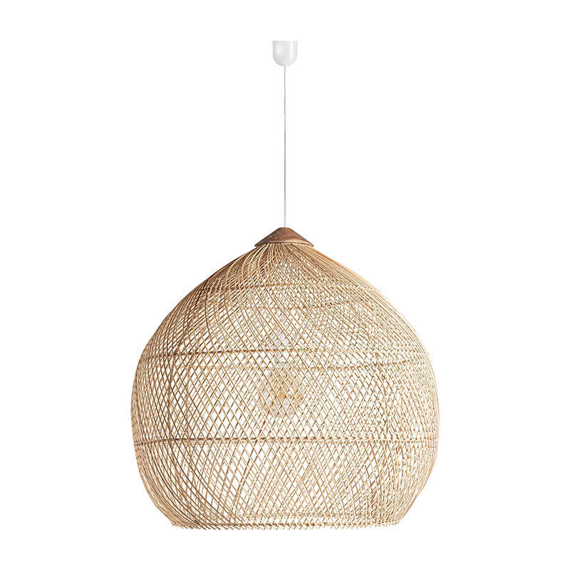 Lámpara de colgar, en color marrón, de estilo boho. Fabricado en ratán.