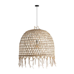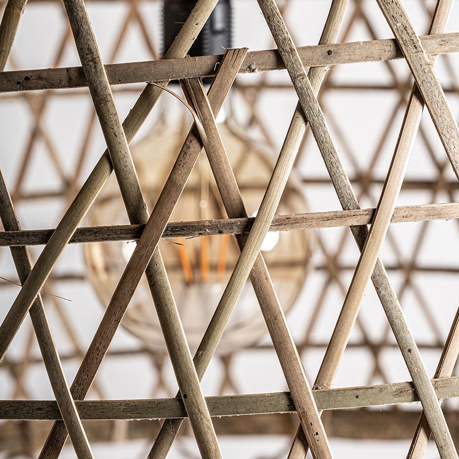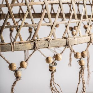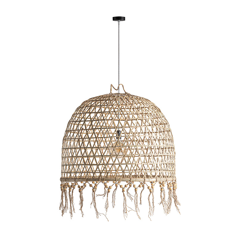 Lámpara de colgar de estilo boho fabricado en bambú en color marrón combinado con metal.