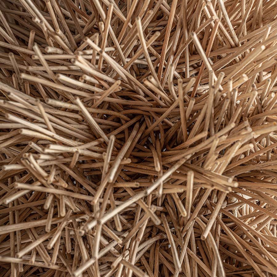 Lámpara de colgar de estilo boho fabricado en ratán en color marrón.