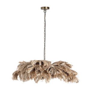 Lámpara de colgar de estilo étnico fabricado en aluminio en color marrón combinado con ratán. Producto desmontable.