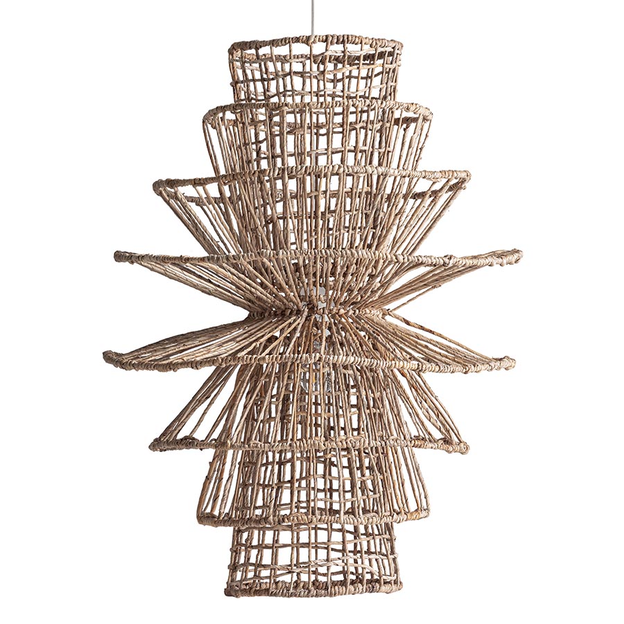 Lámpara de colgar de estilo boho fabricado en fibra natural en color marrón.