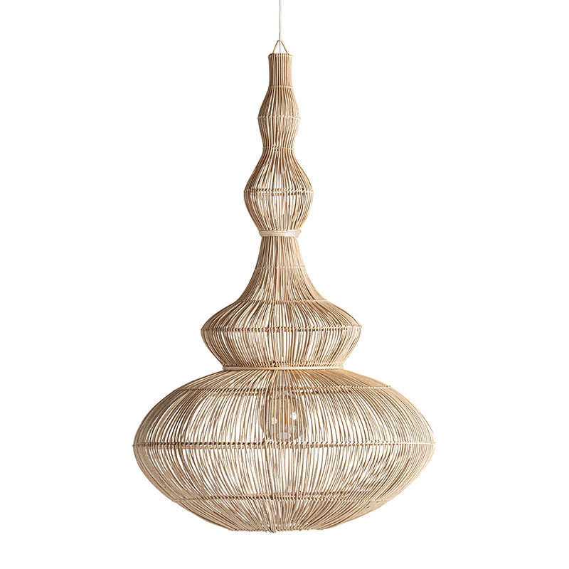 Lámpara de colgar de estilo boho fabricado en ratán en color marrón.