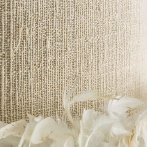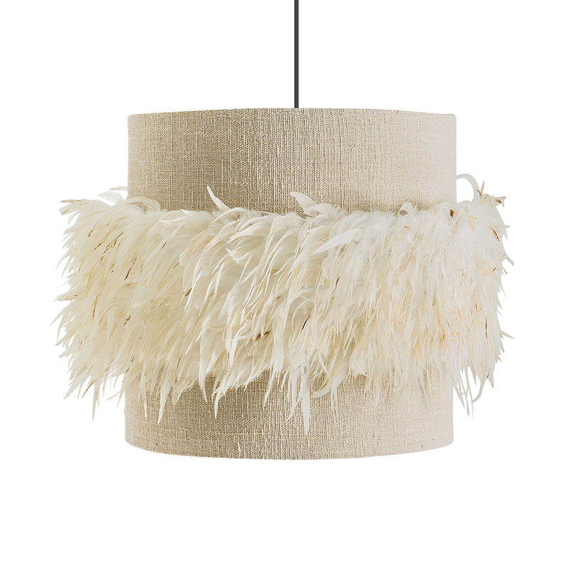 Lámpara de colgar Airole de estilo provenzal fabricado en poliéster en color crema combinado con plumas.