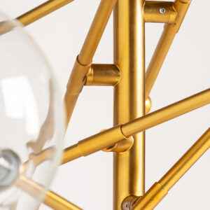 Lámpara de colgar bola de estilo art deco fabricado en hierro en color oro combinado con vidrio. Producto desmontable.