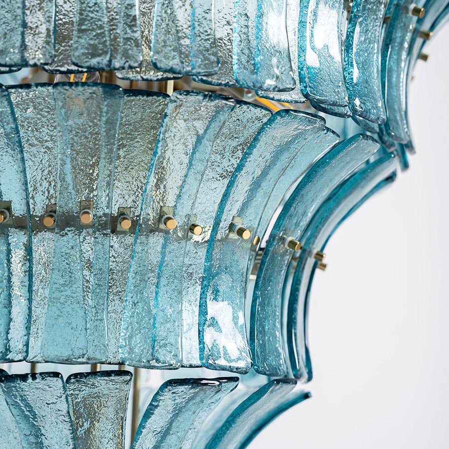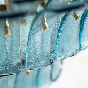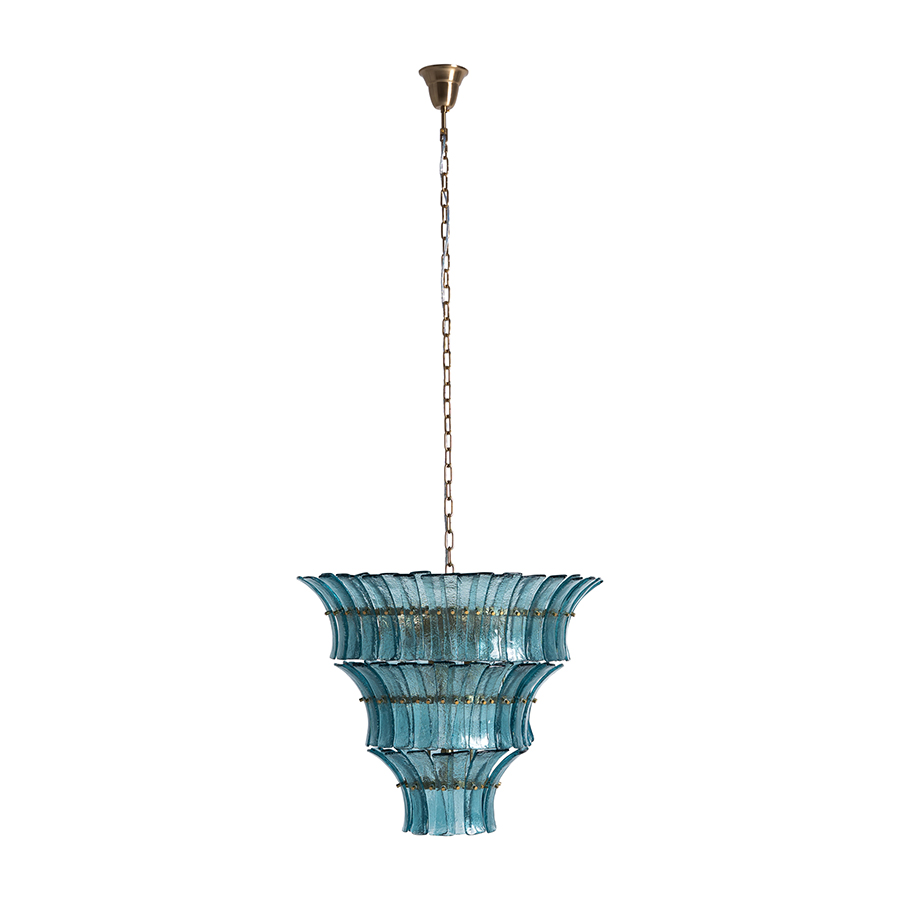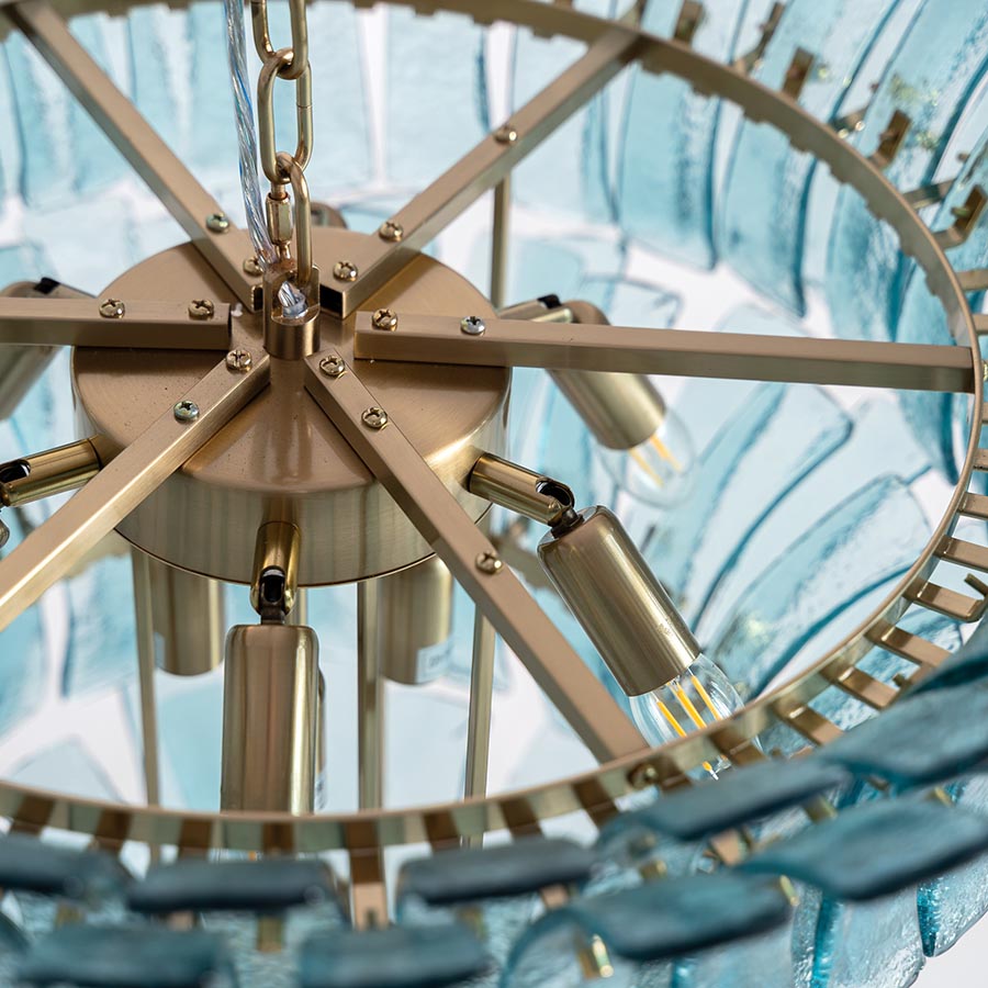 Lámpara de colgar Breglia de estilo vintage fabricado en cristal en color azul combinado con hierro en color cobre. Producto desmontable.