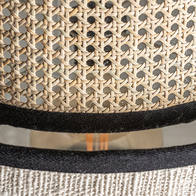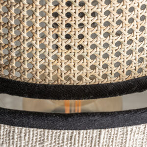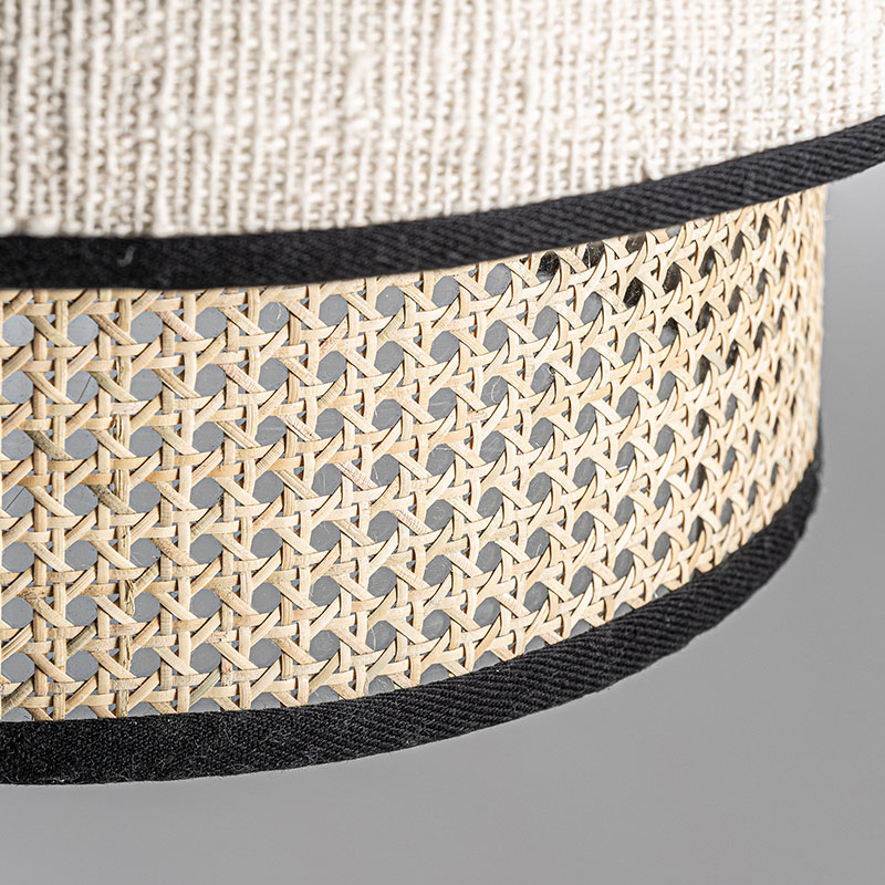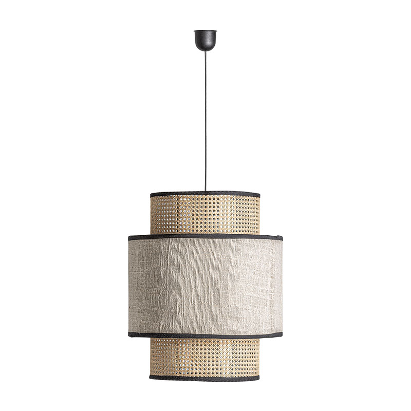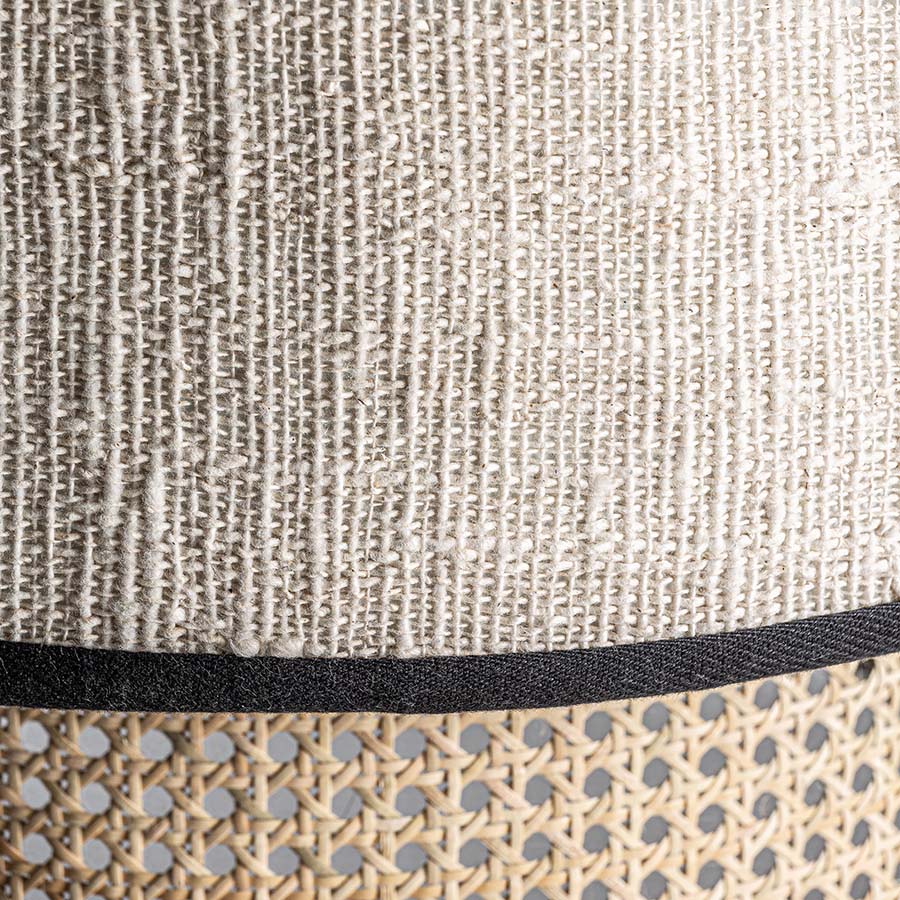 Lámpara de colgar glesse de estilo boho, fabricado en ratán en color marrón, combinado con algodón en color blanco roto y hierro.