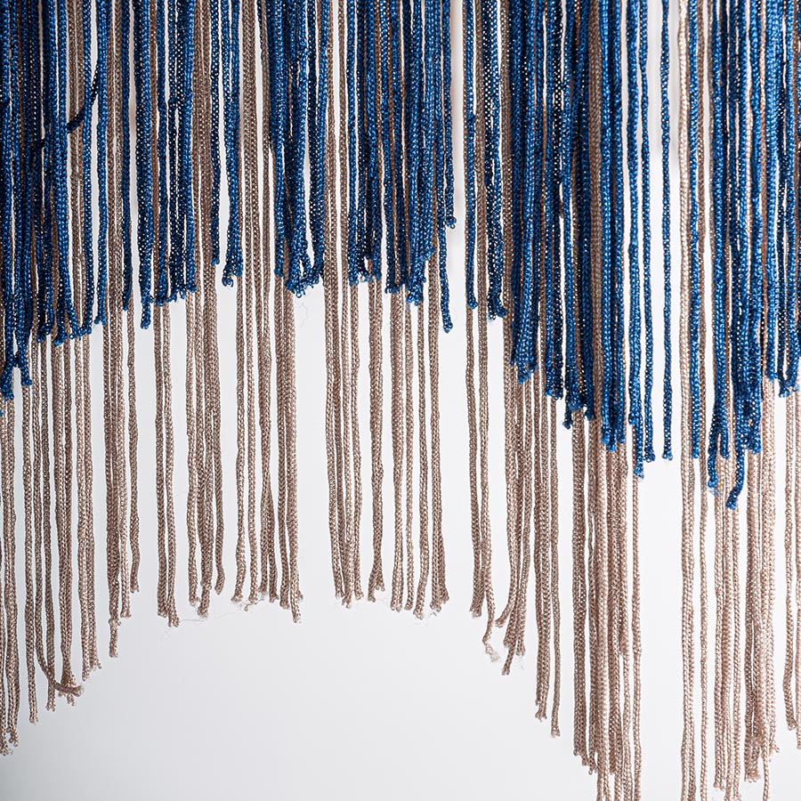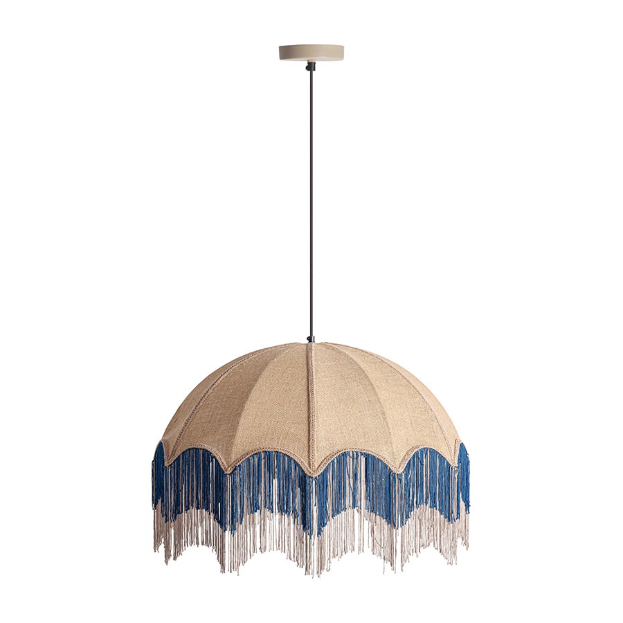 Lámpara de colgar Lashem de estilo provenzal fabricado en yute en color beige combinado con acrílico en color azul y hierro en color marrón.
