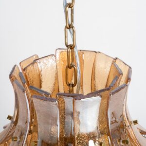 Lámpara de colgar Lierna de estilo vintage fabricado en cristal en color marrón combinado con hierro en color cobre. Producto desmontable.