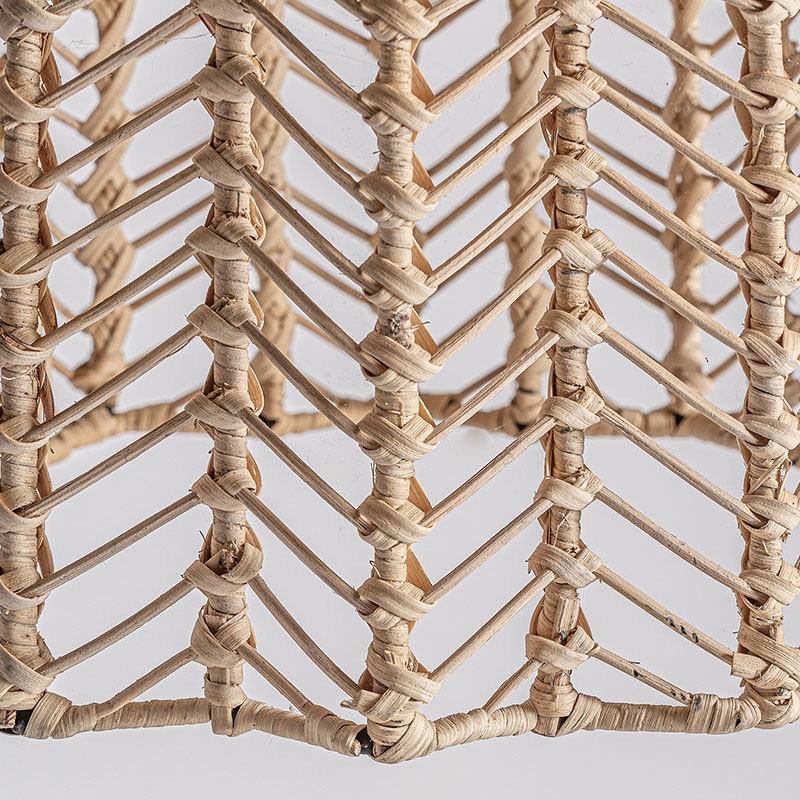 Lámpara de colgar Plissé rattan de estilo nórdico fabricado en ratán en color marrón combinado con acero.