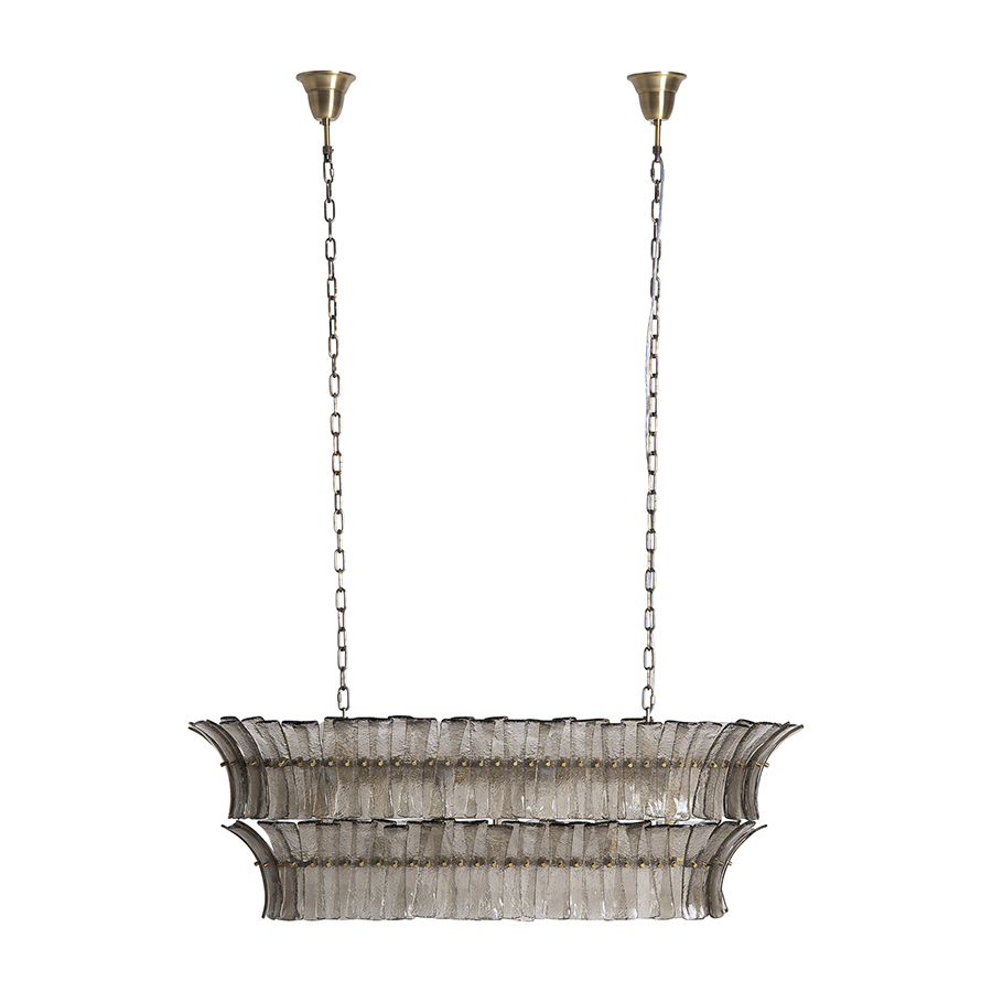 Lámpara de colgar Vercana de estilo vintage fabricado en cristal en color gris combinado con hierro en color bronce. Producto desmontable.