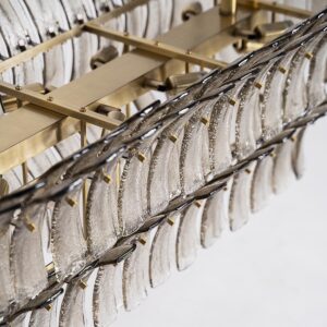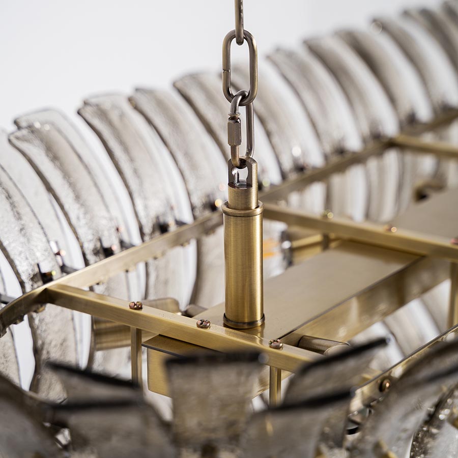 Lámpara de colgar Aurea de estilo art deco fabricado en alabastro en color blanco combinado con acero en color oro con acabado bronce.