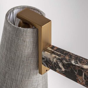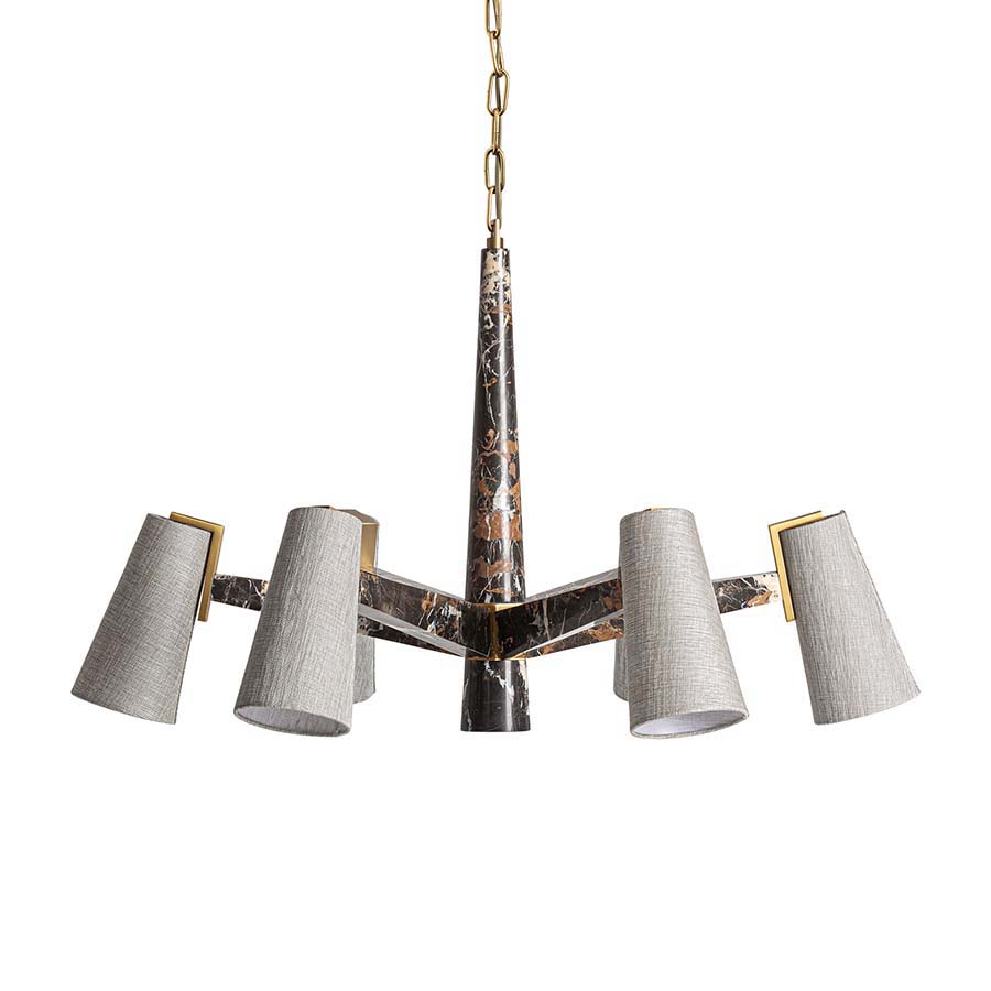 Lámpara de colgar Wale de estilo art deco fabricado en mármol en color negro combinado con metal en color dorado y poliéster en color blanco roto. Producto desmontable.