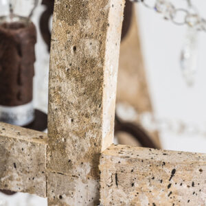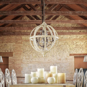 Lámpara de colgar yadens, en color beige envejecido, de estilo provenzal. Fabricado en hierro, combinado con madera eucalipto. Producto desmontable.