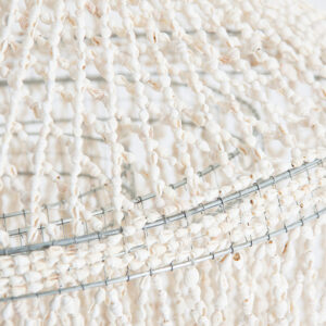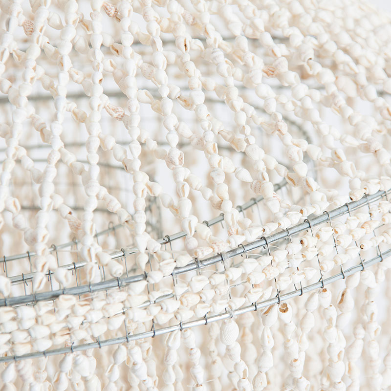 Lámpara de colgar de estilo contemporáneo fabricado en concha en color blanco roto. Producto plegable.