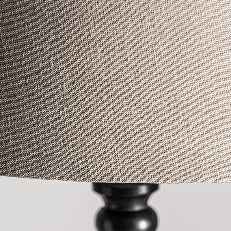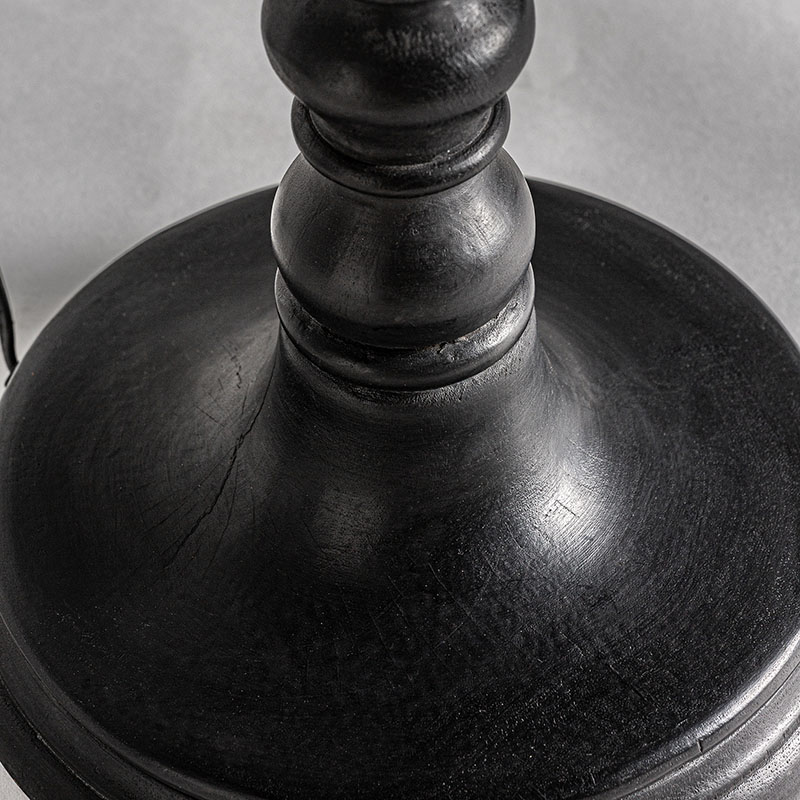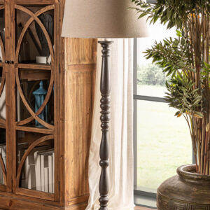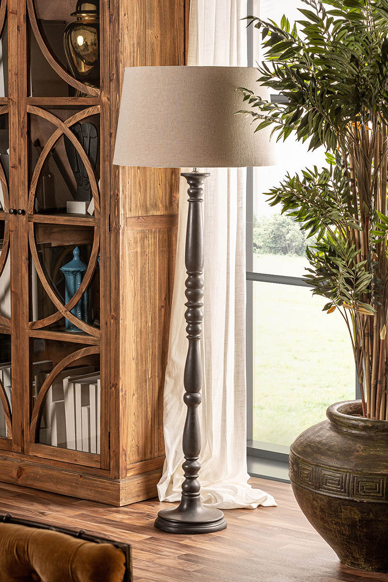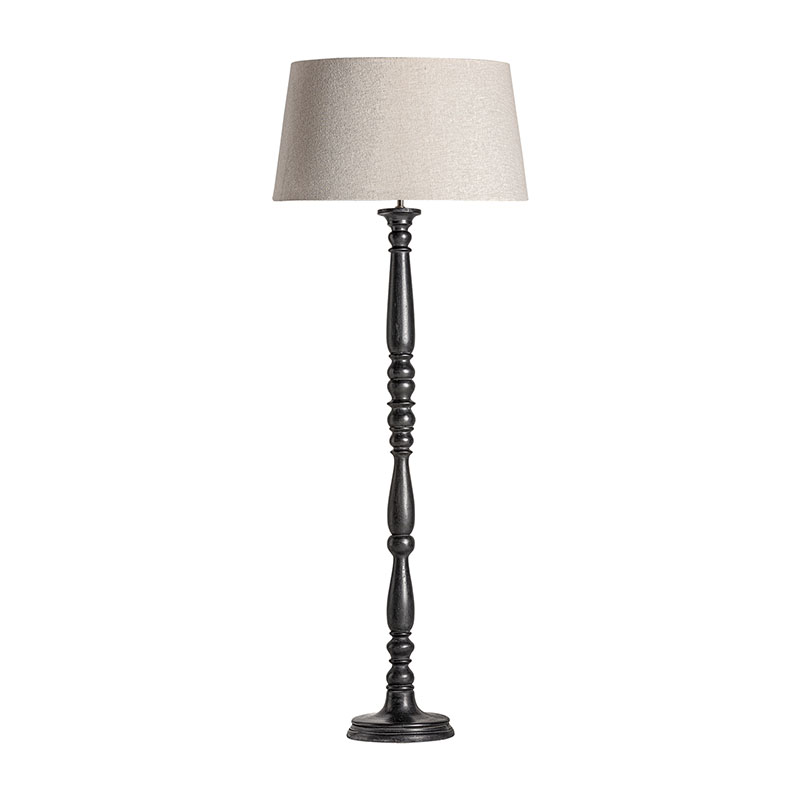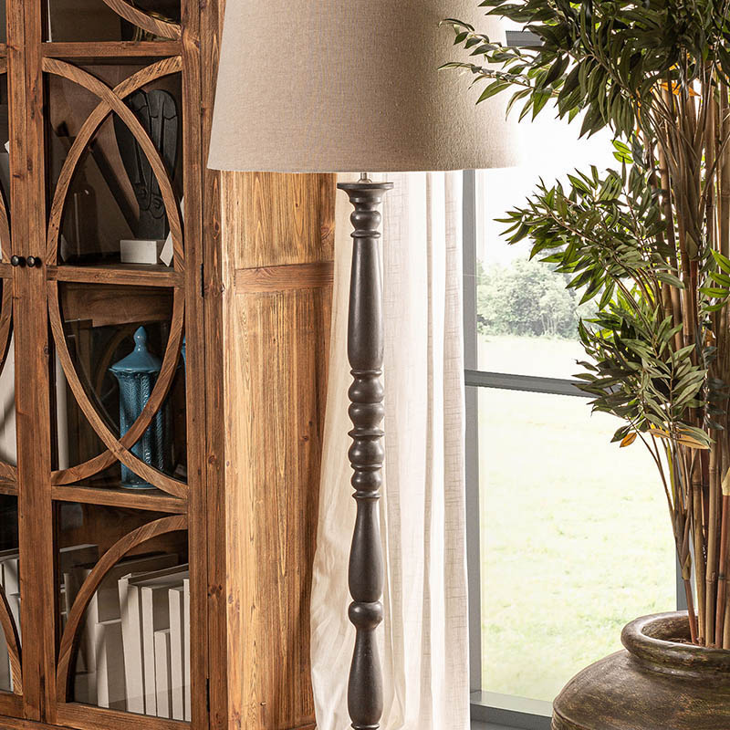 Lámpara de pie, en color negra, de estilo provenzal. Fabricado en madera de mango, combinado con algodón.