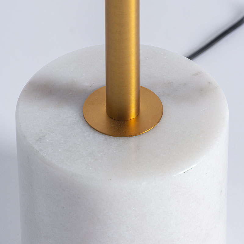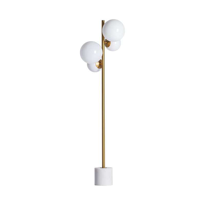 Lámpara de pie, en color oro, de estilo art deco. Fabricado en hierro, combinado con cristal y mármol. Producto desmontable.