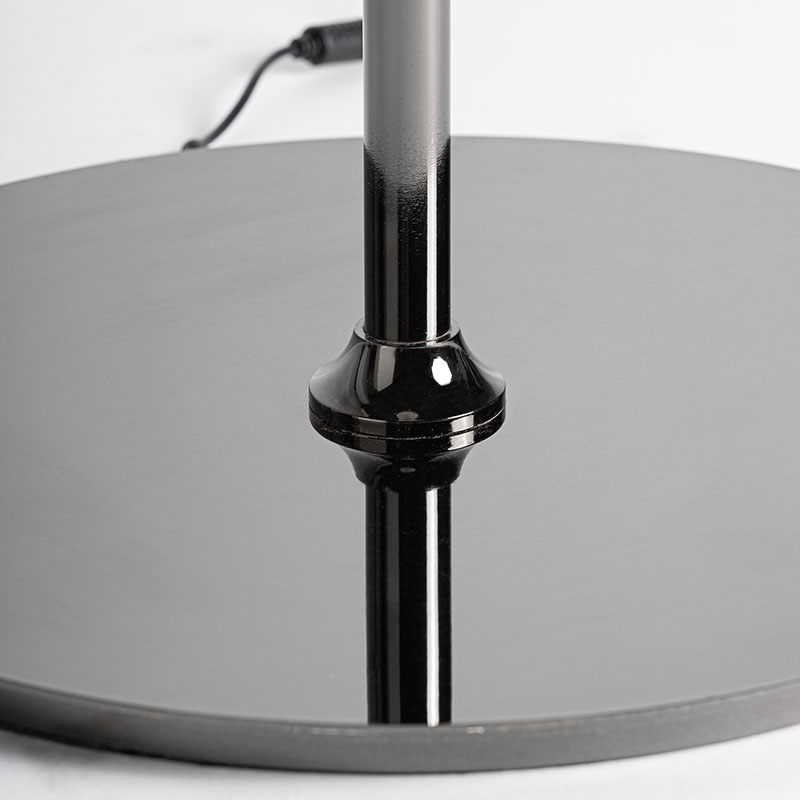Lámpara de pie de estilo art deco fabricado en cristal en color negro combinado con latón y acrílico. Producto desmontable.