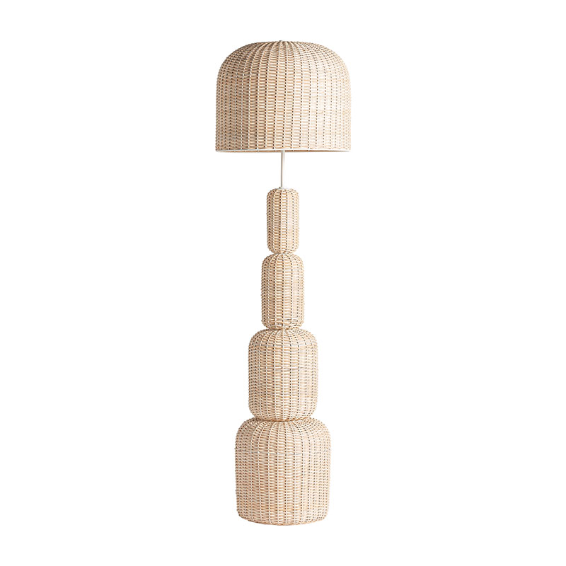 Lámpara de pie, en color marrón claro. Fabricado en ratán.