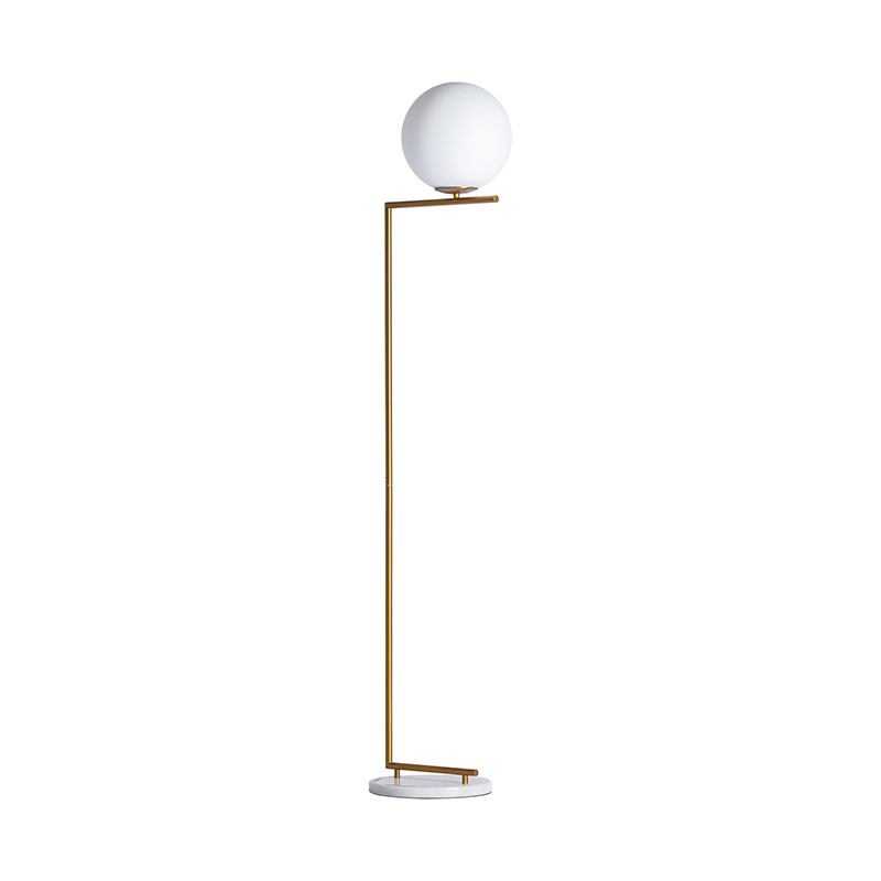 Lámpara de pie, en color oro, de estilo art deco. Fabricado en hierro, combinado con cristal y mármol. Producto desmontable.