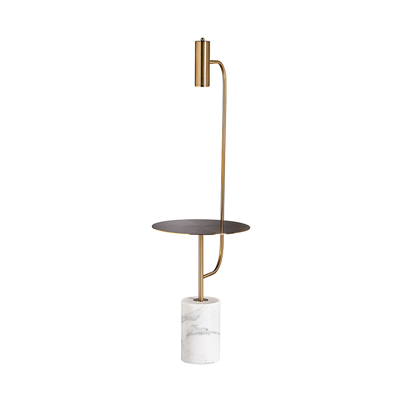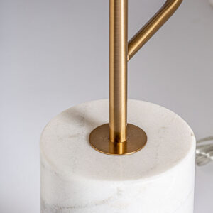 Lámpara de pie de estilo art deco fabricado en hierro en color blanco combinado con mármol en color oro. Producto desmontable.