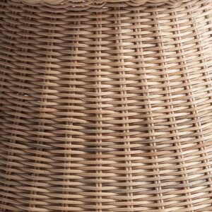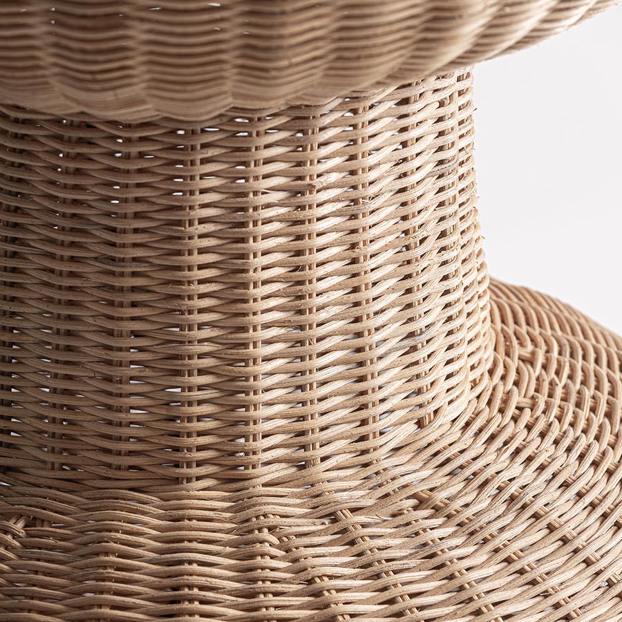 Lámpara de pie de estilo boho fabricado en ratán en color marrón.
