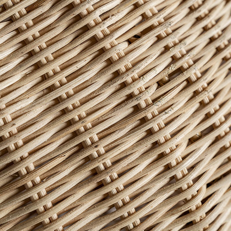 Lámpara de pie de estilo boho fabricado en ratán en color marrón claro.