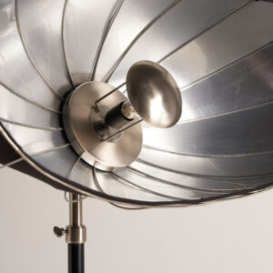 Lámpara de pie Alia de estilo art deco fabricado en hierro en color negro en color plata. Producto elevable.