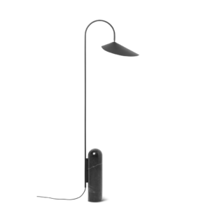 Lámpara de pie Amelie de estilo art deco fabricado en acero en color negro combinado con poliéster en color bronce. Producto desmontable.