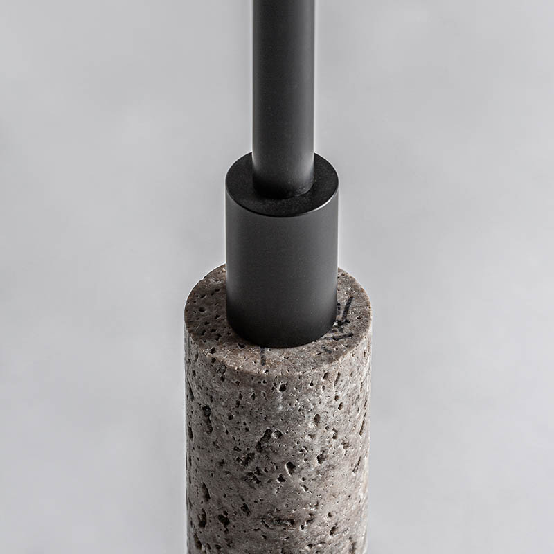 Lámpara de pie Atlas de estilo art deco fabricado en mármol en color gris combinado con hierro en color negro. Producto desmontable.