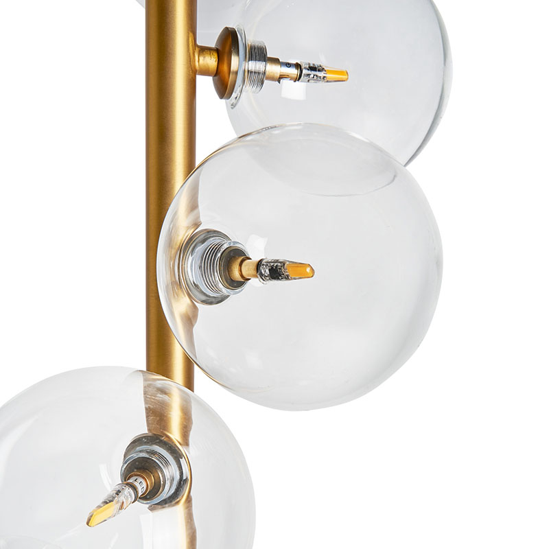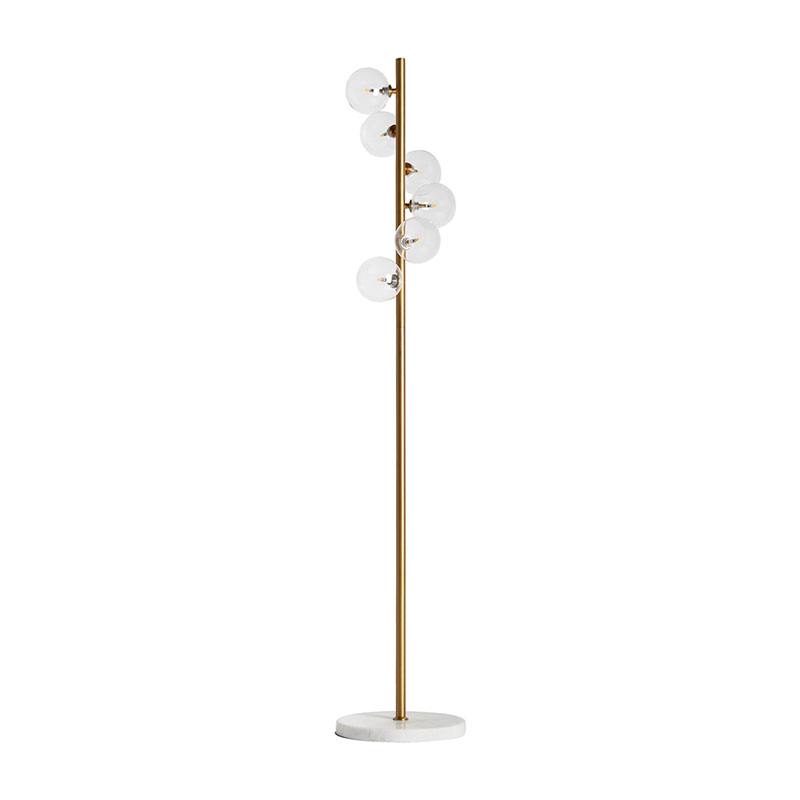 Lámpara de pie bola, en color blanco/oro, de estilo contemporáneo. Fabricado en hierro, combinado con vidrio y mármol. Producto desmontable. Compatible con: 27759.