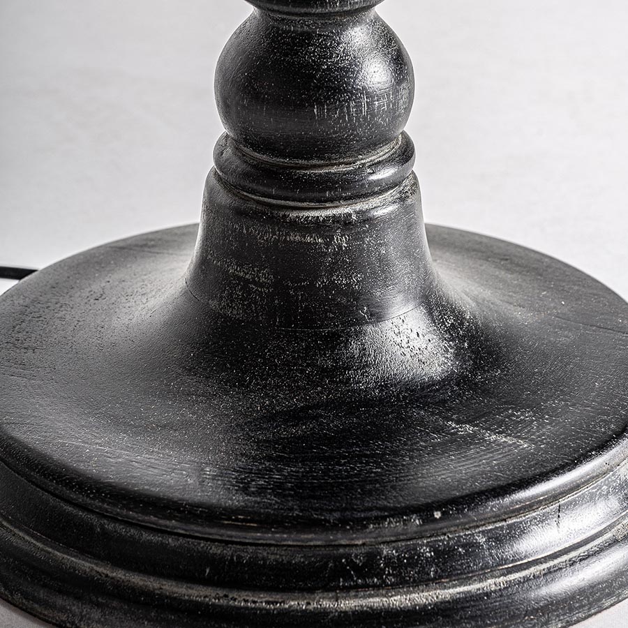 Lámpara de pie Henri de estilo clásico fabricado en madera de mango en color blanco combinado con algodón en color negro. Producto desmontable.