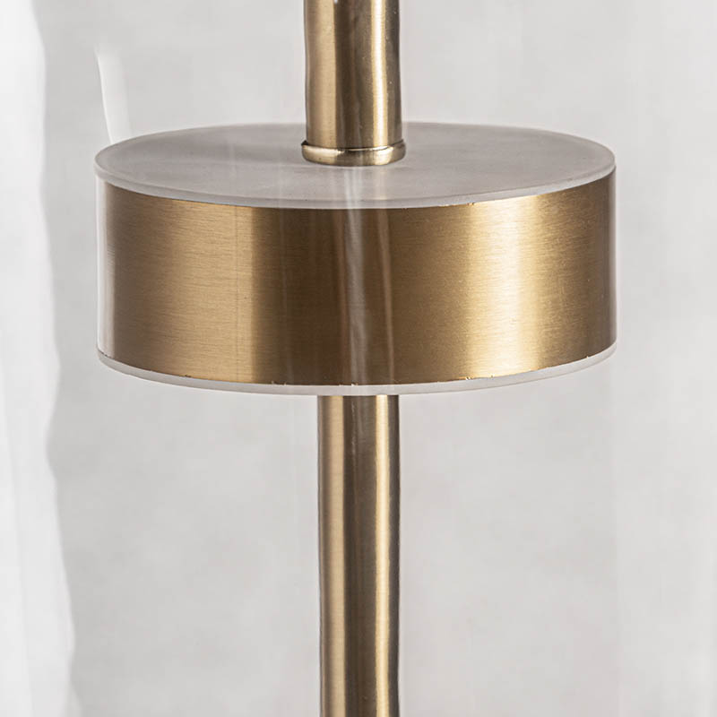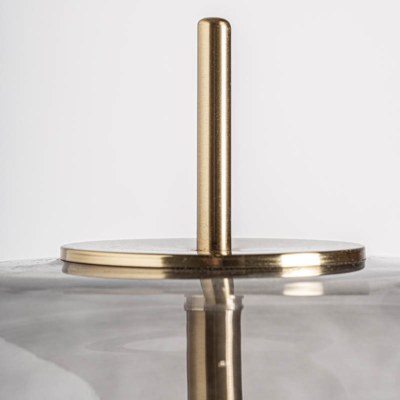 Lámpara de pie Jeane de estilo art deco fabricado en cristal en color gris con acabado ahumado combinado con acrílico en color oro. Producto desmontable.