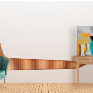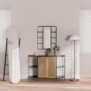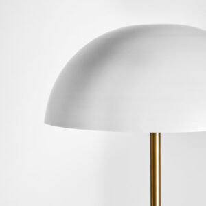 LÁMPARA DE PIE KALINA, EN COLOR BLANCO/ORO, DE ESTILO ART DECO. FABRICADO EN HIERRO, COMBINADO CON MADERA DE MANGO. PRODUCTO DESMONTABLE.