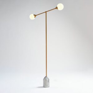 Lámpara de pie Mae de estilo industrial fabricado en hierro en color negro combinado con acrílico. Producto desmontable.