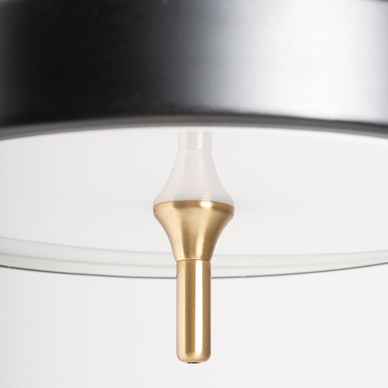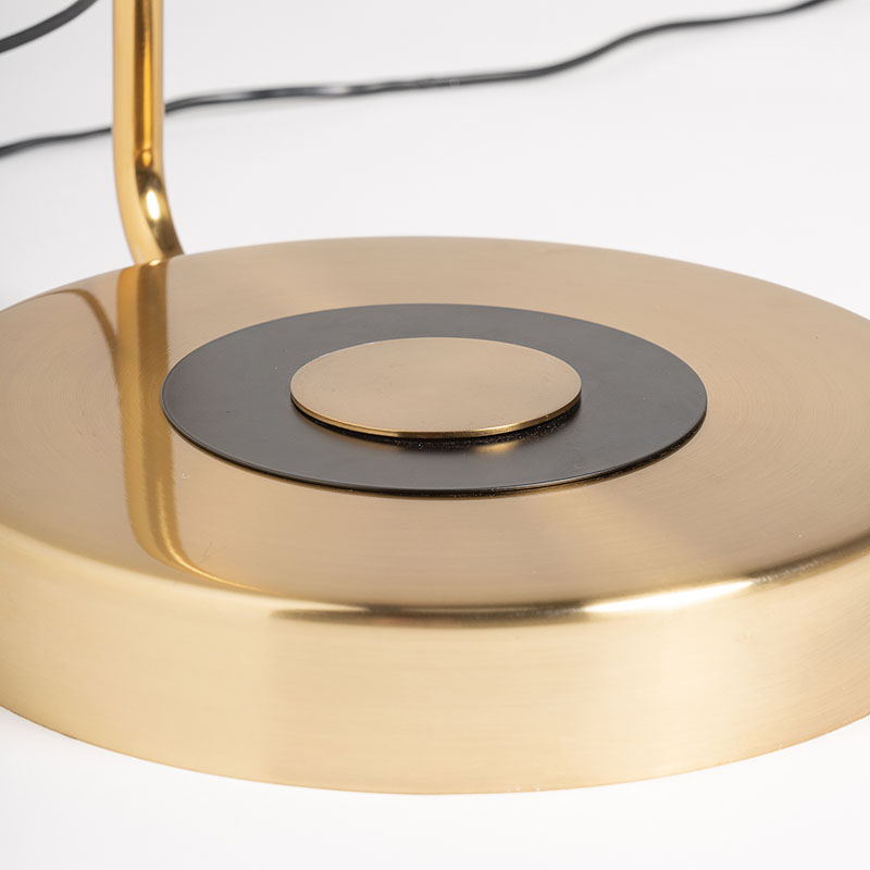 Lámpara de pie maoz de estilo art deco fabricado en hierro en color oro combinado con acrílico en color negro.