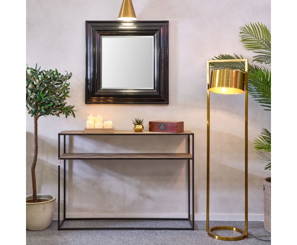 Lámpara de pie de estilo art deco fabricado en cristal en color negro combinado con latón y acrílico. Producto desmontable.