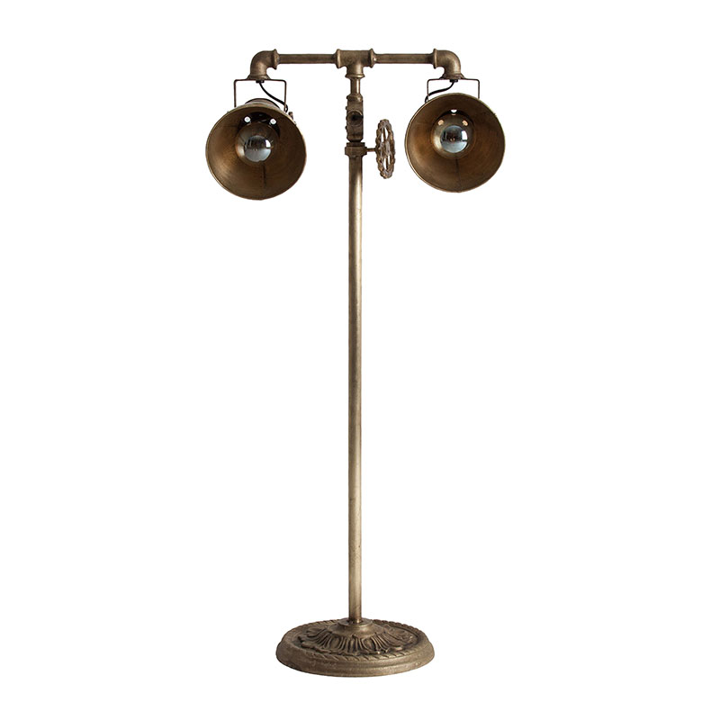 Lámpara de pie ottawa, en color oro viejo, de estilo vintage. Fabricado en hierro. Producto elevable.