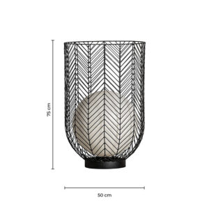 Lámpara de pie plissé metal, en color negra, de estilo art deco. Fabricado en cemento, combinado con hierro.