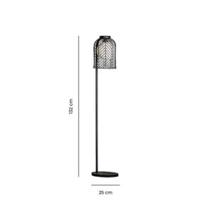 Lámpara de pie plissé rattan de estilo nórdico fabricado en hierro en color negro combinado con ratán en color marrón claro.