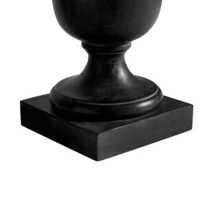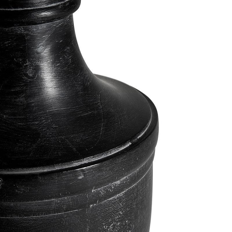 • Lámpara de sobremesa de estilo provenzal fabricado en madera de mango en color negro con acabado decapado combinado con algodón.