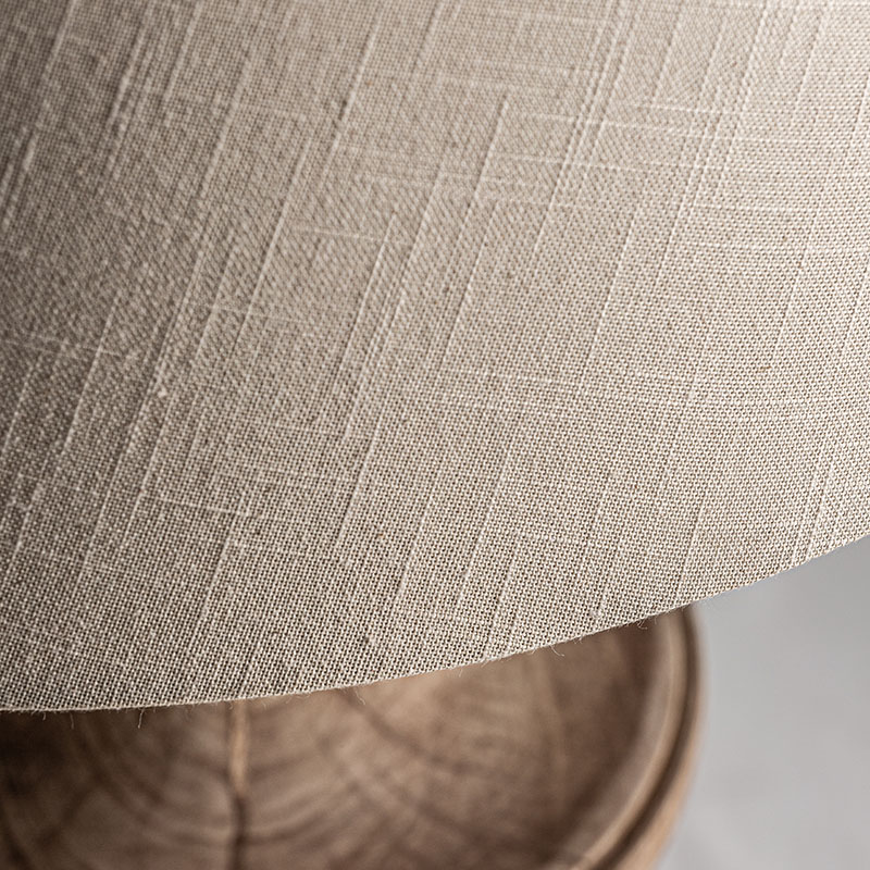 Lámpara de sobremesa de estilo provenzal fabricado en madera de mango en color marrón combinado con algodón.