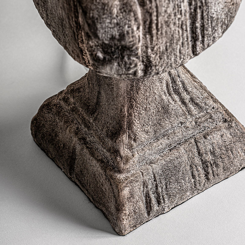 Lámpara de sobremesa de estilo contemporáneo fabricado en resina en color marrón con acabado envejecido combinado con yute. Producto desmontable.