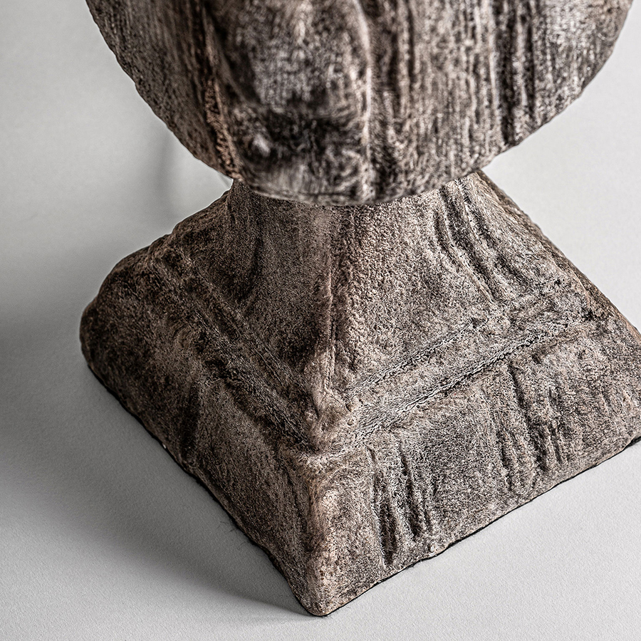 • Lámpara de sobremesa de estilo contemporáneo fabricado en resina en color marrón con acabado envejecido combinado con yute. Producto desmontable.