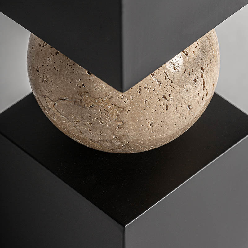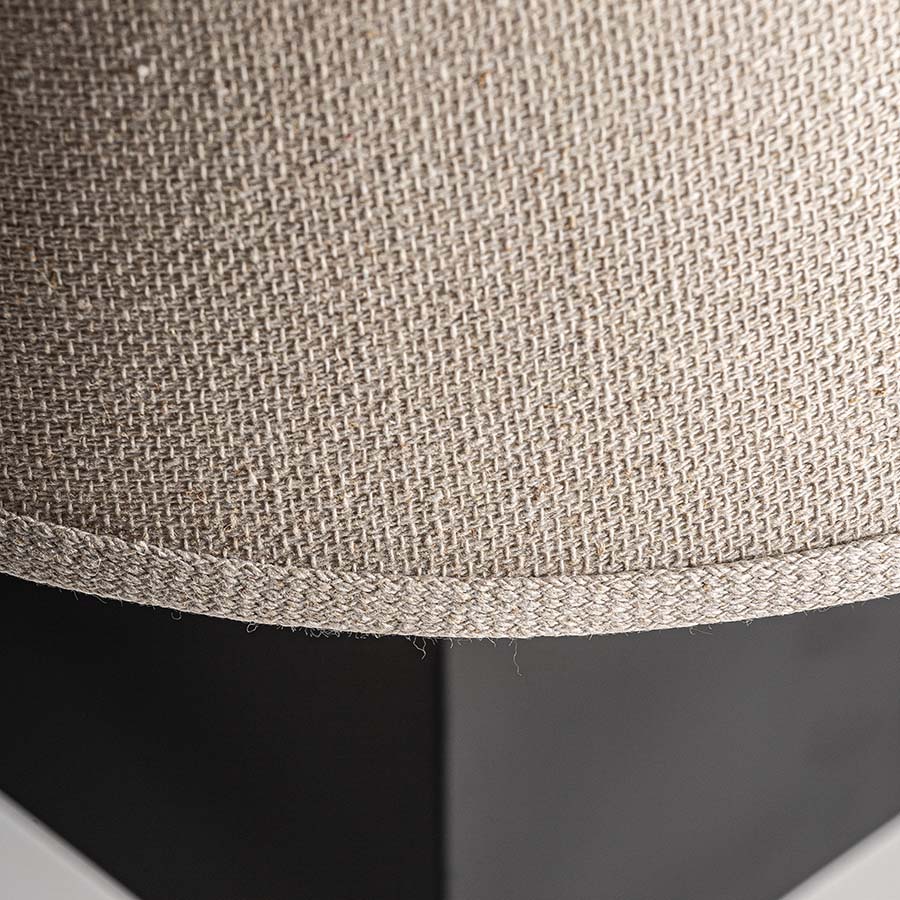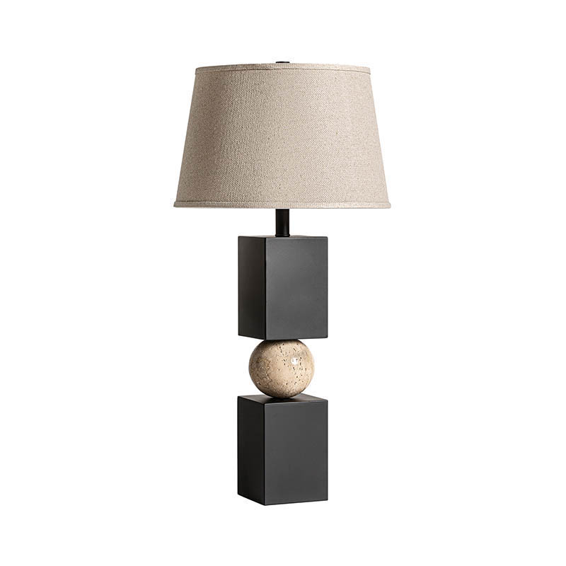 Lámpara de sobremesa, de estilo art deco. Fabricado en mármol, en color negro, combinado con hierro, en color marrón y lino. Producto desmontable.