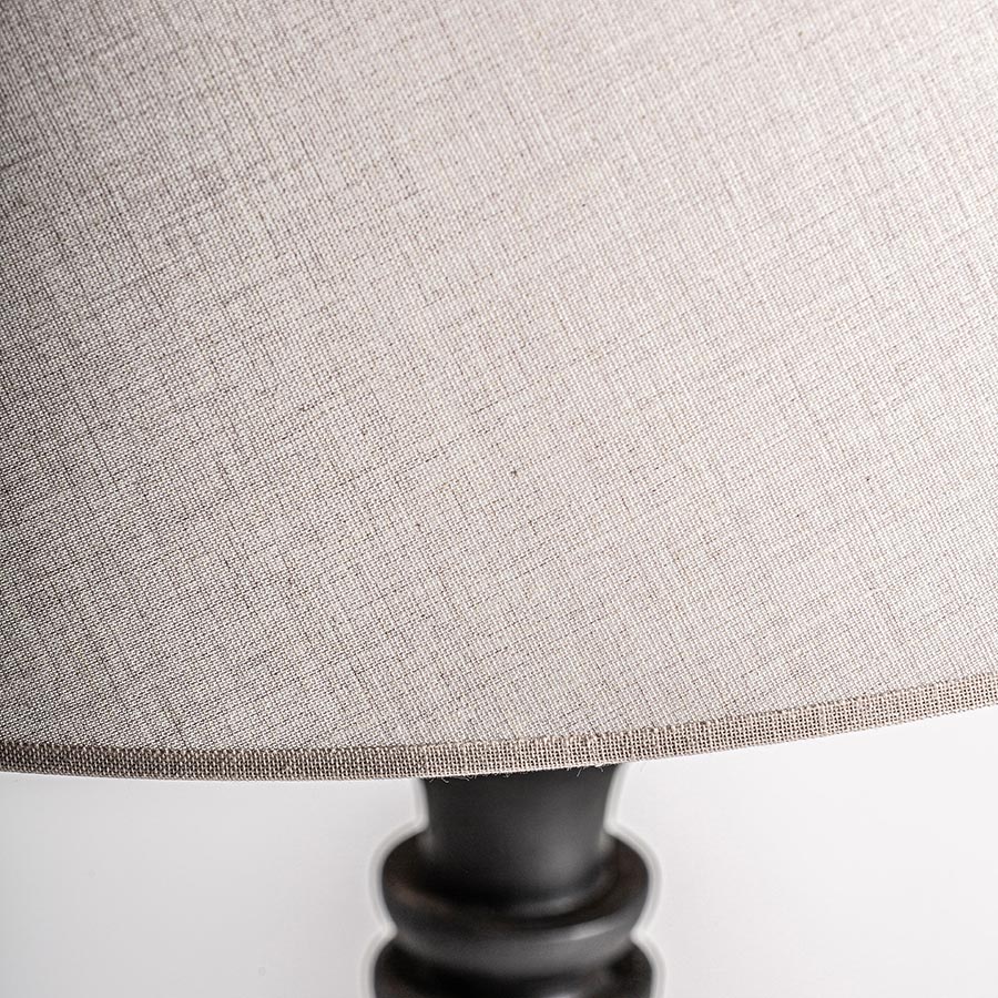 Lámpara de sobremesa de estilo vintage fabricado en terracota en color tonos claros con acabado envejecido combinado con lino.