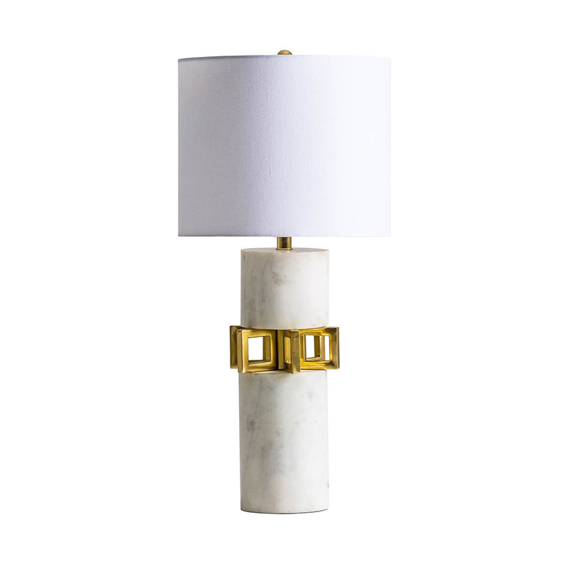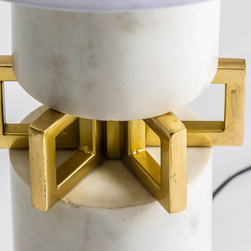 Lámpara de sobremesa, en color blanco/oro, de estilo art deco. Fabricado en mármol, combinado con algodón. Producto desmontable.